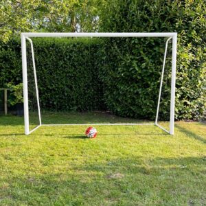 Køb stål fodboldmål i en extra kraftig galvaniseret kvalitet og i et design som du kender fra fodboldklubben. Fodboldmålet er fremstillet i pulverlakeret galvaniseret stål med en rørtykkelse på hele Ø7,8 cm. Fantastisk fodboldmål til en god gang fodboldspil i haven.