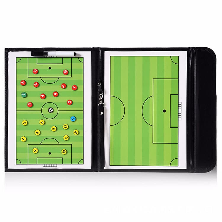 Foldbar taktikplade i foldbarmappe til fodbold.