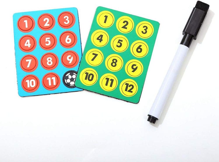 Fodbold taktiktavle med magnetiske holdbrikker, svamp og skrivepen. Ideel til planlægning af træning og coaching af fodboldholdet. Fuld fodboldbane design. Sættet kommer med 22 stk magnetiske brikker med tal samt 1 stk magnetisk fodbold, 1 stk afrensningssvamp, 1 stk pen til brug på whiteboard.