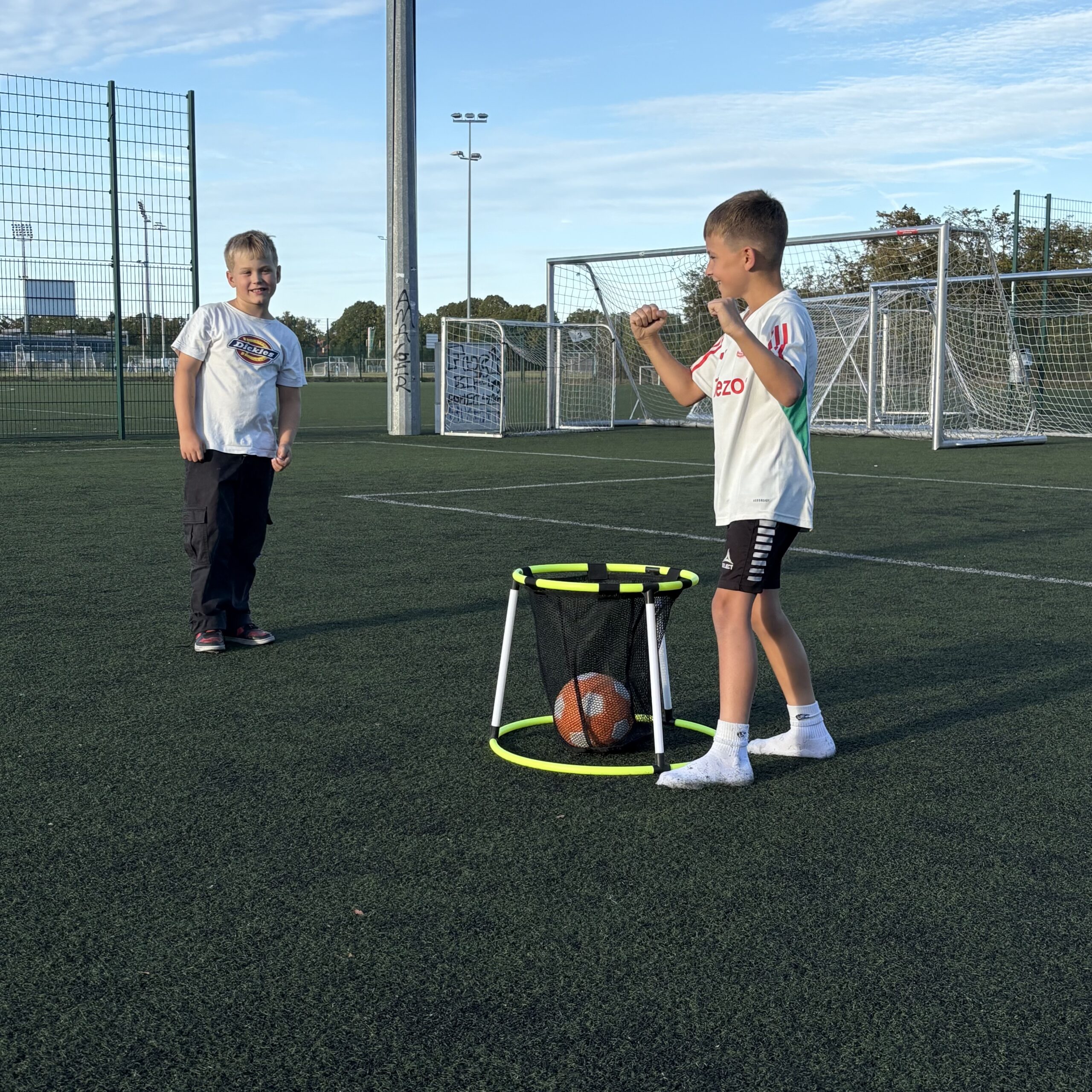 Kurven kan bruges overalt – på græsplænen, træningsbanen eller i skolegården. Let at flytte og klar til spil på få sekunder.
