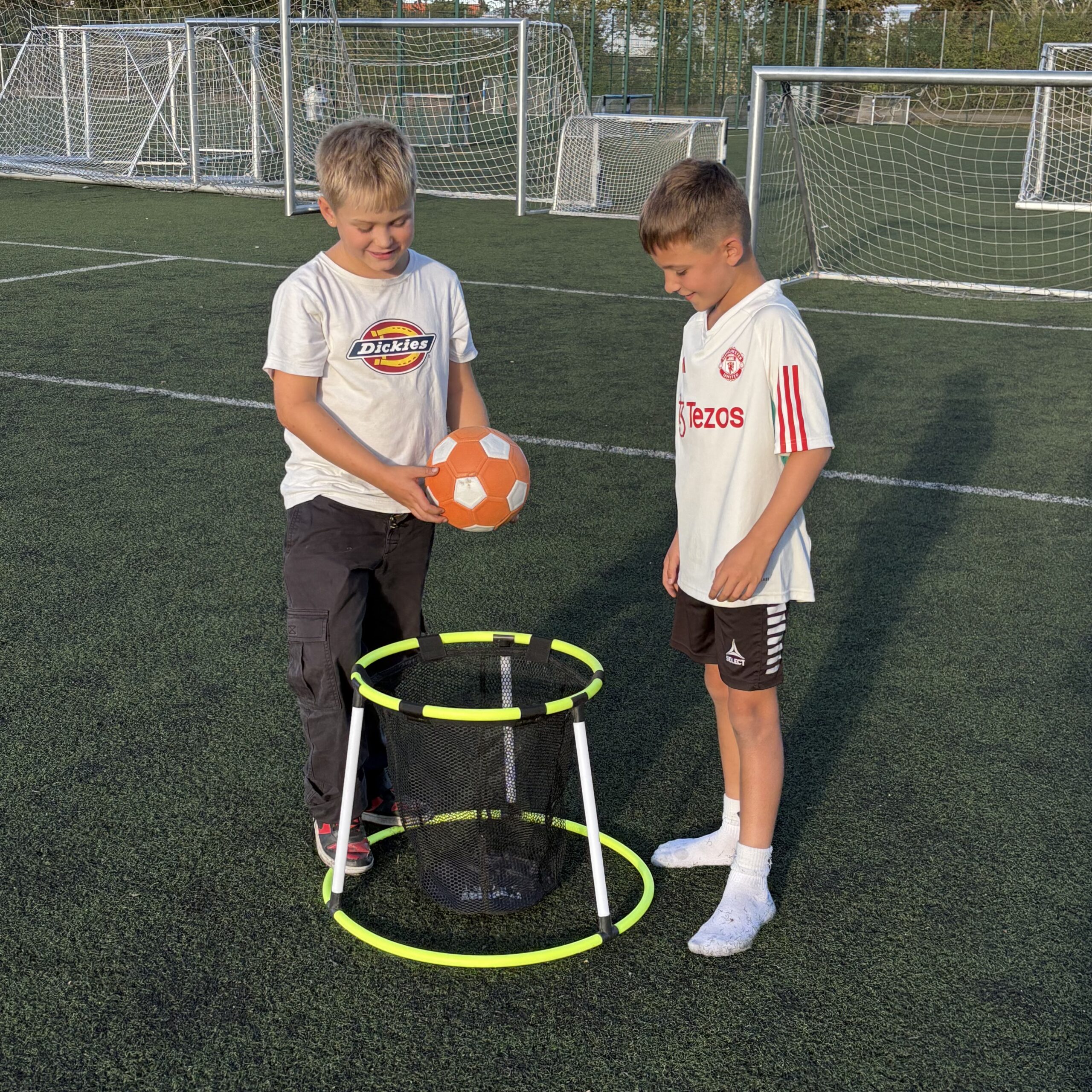 Nyt og sjovt fodboldspil, der kombinerer leg og målrettet fodboldtræning i samme spil. Spillet består af en rund kurv med et boldnet monteret i midten – og målet er enkelt: ram bolden op i nettet. Kurvebold er perfekt til både fodboldtræning og leg i haven. Spil alene for at finpudse teknikken eller udfordr dine venner i en spændende konkurrence. Du kan ´nemt lave dine egne regler til kurvespillet.