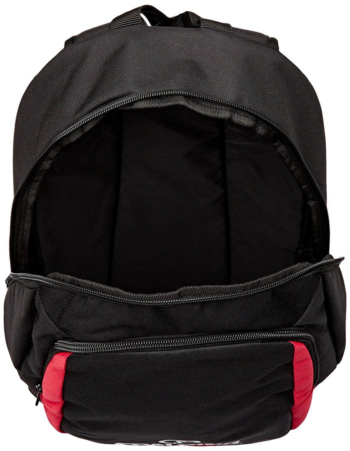 Solid og vaskbar rygsæk i sort og rosa. Stort rummeligt rum samt lille forrum med lynlås.